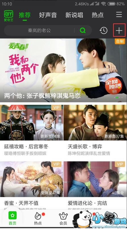 1、打开爱奇艺手机APP,点击右上角的“+”。