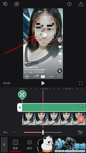 3、然后就回到看马赛克了,点击【图案】可以选择马赛克的样式,然后也可以对马赛克的大小进行调整。