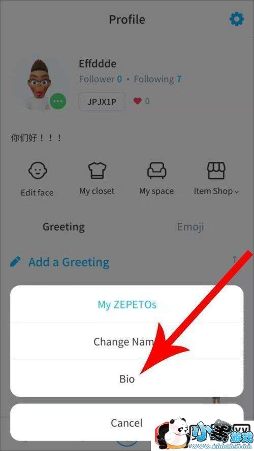界面底部打开弹窗后点击“bio”设置项