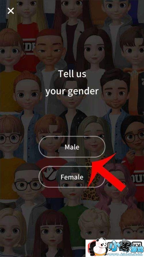 zepeto重新打开创建角色界面后,点击界面上的“create a zepeto”按钮后,点选角色性别