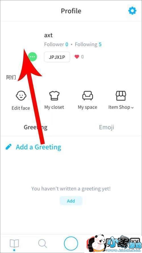 进入到个人页面后,点击名字右侧的区域,位置见下图