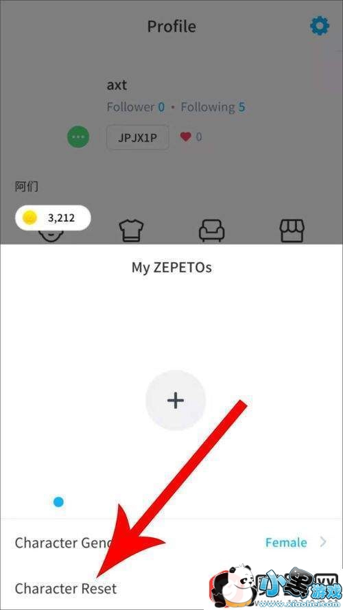 点击“character reset”,然后点击重新创建角色弹窗中的“ok”,位置见下图
