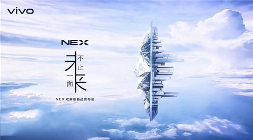 vivonex双面屏新品海报的主题是“未来不止一面”,画面中手机一面“山峦”一面“都市”,暗示双面屏将会给我们带来完全不一样的感受。
