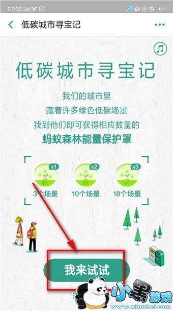 5.就会出现【低碳城市寻宝记】活动,然后点击【我来试试】
