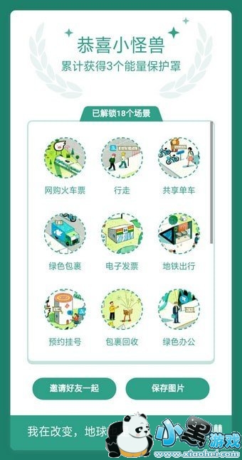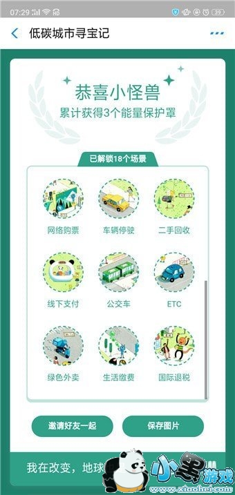 6.进入场景寻找【绿色低碳场景】,解锁全部场景即可获得3个能量保护罩
