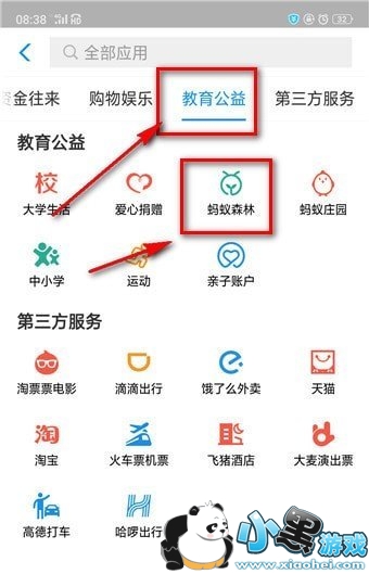 2.在【教育公益】栏目中找到【蚂蚁森林】,点击【蚂蚁森林】进入