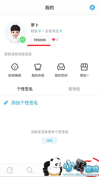 1、首先进入软件之后点击右下角的人像图标,然后在顶部头像旁边有一串数字就是好友代码了。复制这串代码;