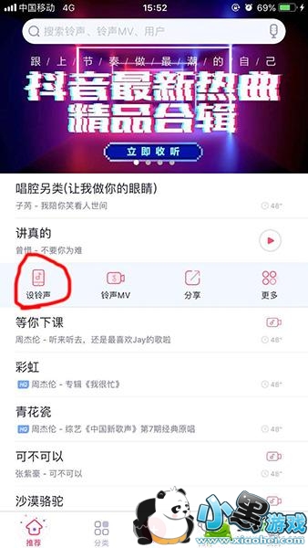 1、手相打开下载好的酷音铃声,然后选择自己要设置为铃声的歌曲,点击【设铃声】;