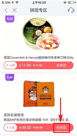 1)点开麦乐购,首先点击首页中的【极速拼团】,然后选择所要拼团的商品,点击【去拼团】;(如下图)