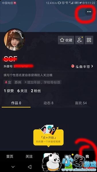 1、满足这三个条件之后,打开抖音进入【我】然后选择右上角的【三个点】进入设置;