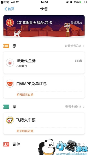 2、点金进入之后就能看到与自己相关的一些内容,比如优惠券、卡、票等详情。