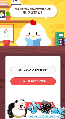 在今天的蚂蚁庄园小课堂中新出的问题是网友小丽说先把钱转给他会再退回来,我该怎么办?正确答案是什么呢?小编在下面已经为大家整理好了,感兴趣的玩家们赶紧进来看看吧!