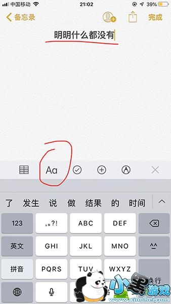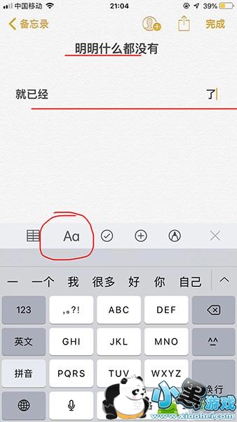 2、接着输入文字,然后给字体添加样式,点击工具栏中的【Aa】;