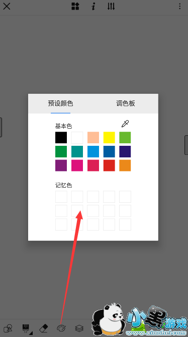 1、当你完成素描稿之后,想要上色可以选择底部的【调色板】功能,然后选择自己的颜色;