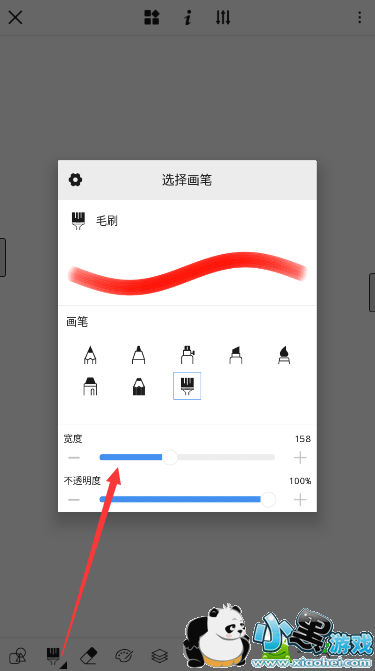 3、然后选择画笔工具,选择相应的画笔型号,调整画笔的宽度以及不透明度等;