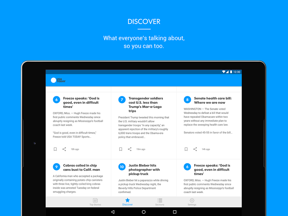 今日美国是美国全国性的报纸,因为它的英文新闻遣词用字比较简洁而且通俗易懂,让英语非母语的人阅读起来较轻松也较有趣,因此很适合学习英语的人下载这个app来试看看。