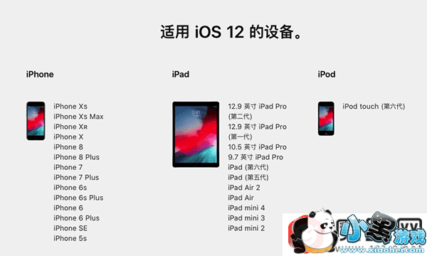 iOS 12.1.2 正式版系统支持升级设备一览: