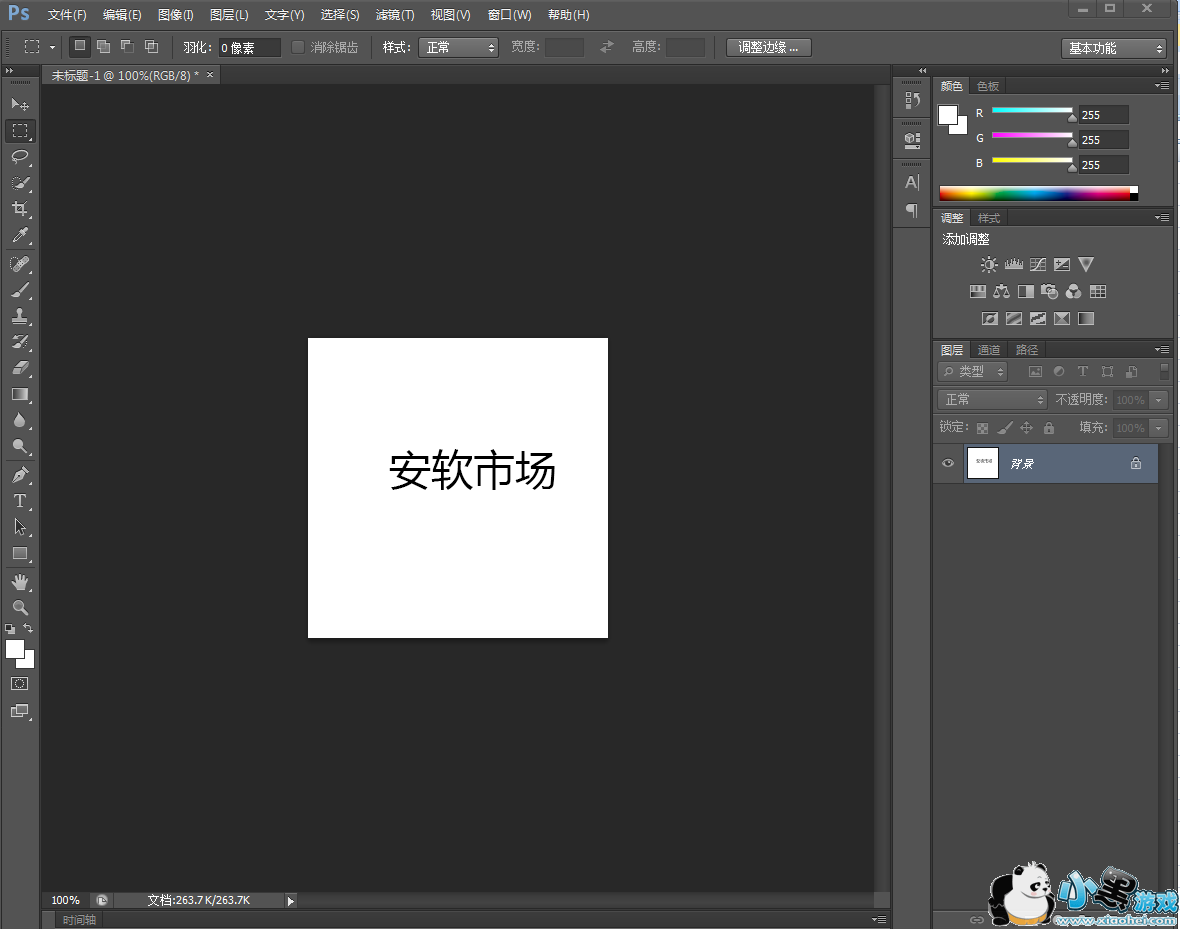1、在ps中新建画布,背景设置为白色。