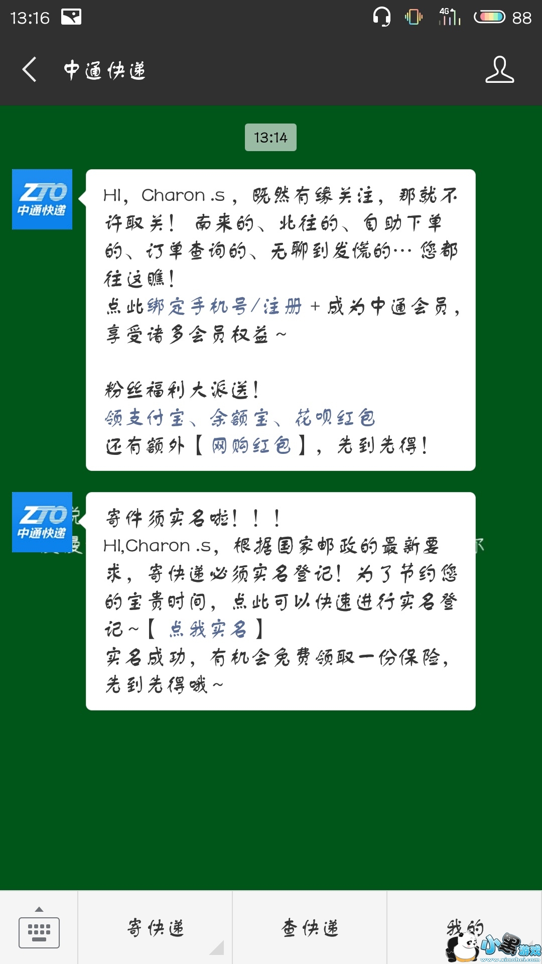 2、打开中通快递公众号,选择“查快递”。