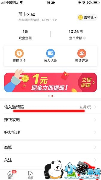 2、进入之后直接可以输入其他人给你的邀请码,比如:DFVF6VF2,输入只有就可以获得现金红包了。