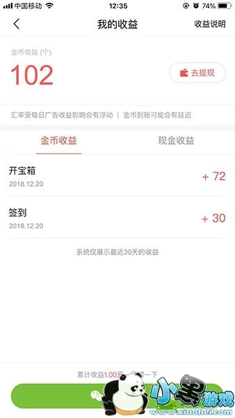 2、进入之后就可以看到自己当天的收益了。