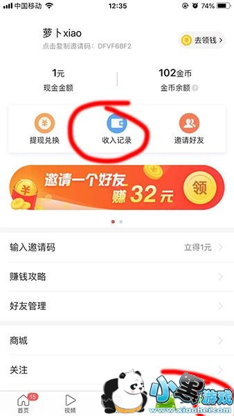1、进入软件之后选择底部的【我的】,然后在界面中找到【收入记录】