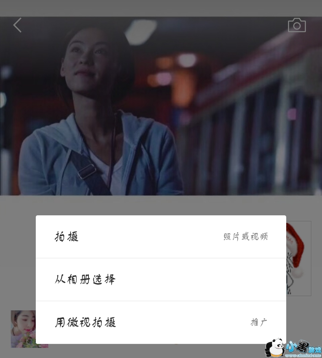 1、按照正常的发朋友圈的流程,我们在朋友圈里点击右上角的相机图标,选择“从相册选择”。