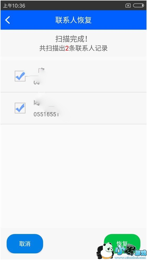 5.软件界面显示之前删除的联系人,用户可以进行勾选,再点击右下角的"恢复"按钮即可进行数据恢复。