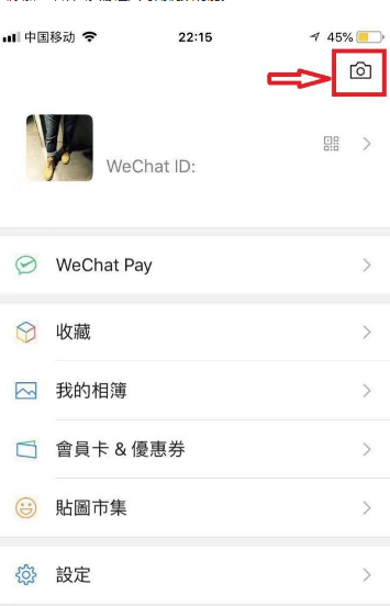 首先打开“我”的页面,我的页面右上角,你会发现最新的版本上添加了一个类似于照相机的标志。这个标志并不是发朋友圈使用。而是为了在朋友圈里面添加一个双击头像进入时刻视频功能。