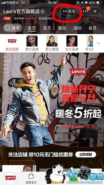 1、首先找到你需要收藏的店铺,然后在右上角有个关注的按钮;