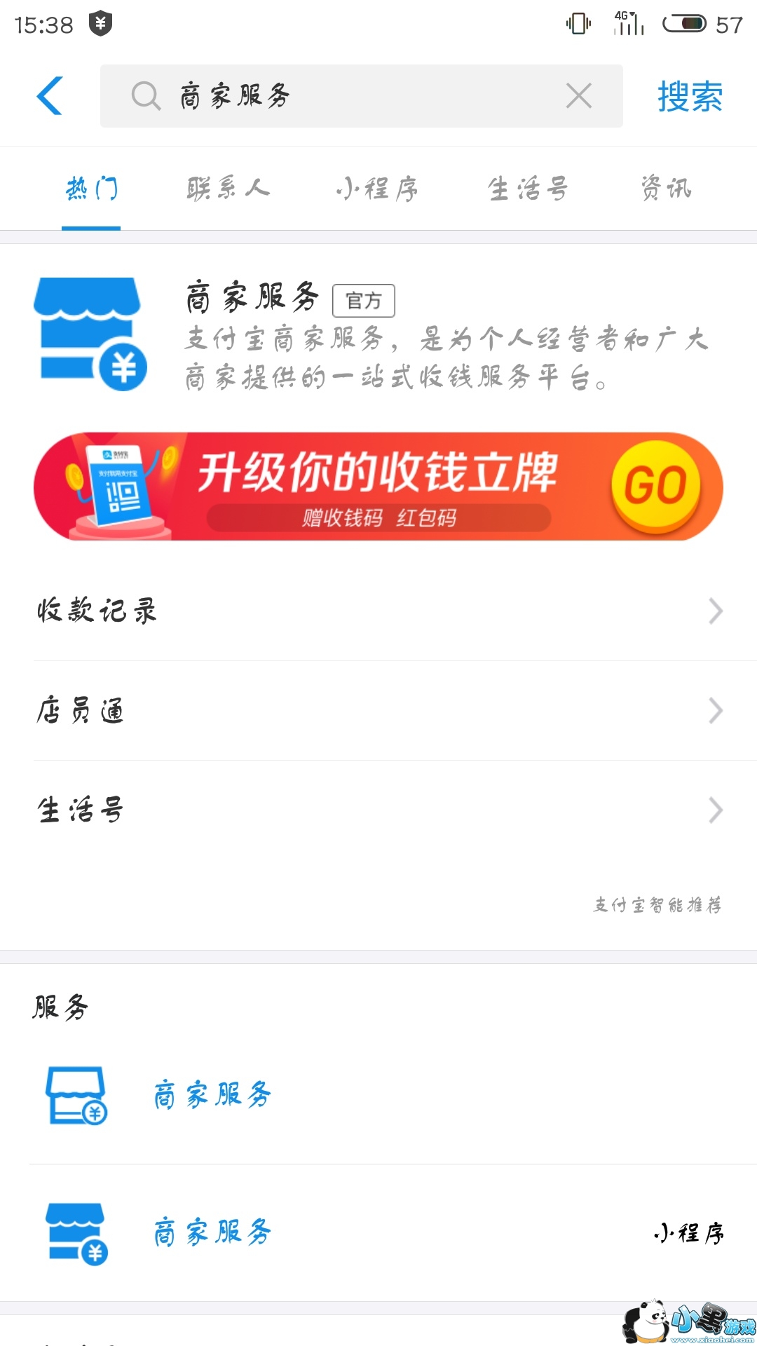 1、支付宝搜索“商家服务”,进入官方商家。
