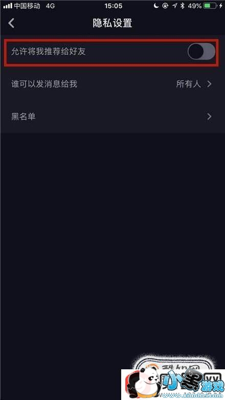 最后点击关闭允许将我推荐给好友开关就可以了。你学会了吗?赶快动手试一试吧。