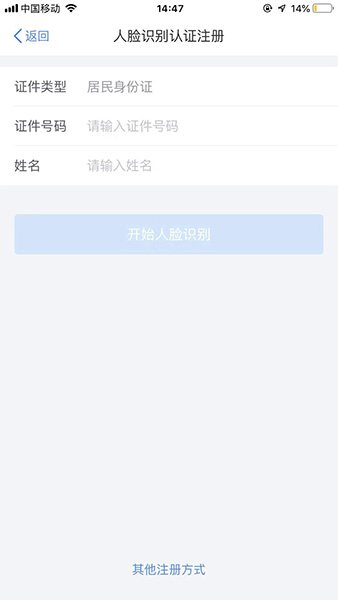 5、人脸识别需要填写证件号以及姓名,然后扫描人脸识别就可以了;