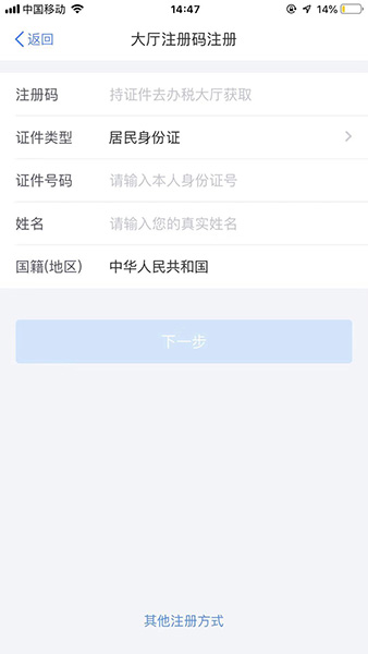 4、大厅注册码注册需要持证件到办税大厅获取注册码;然后在填写相关的信息跟着系统操作就可以了;