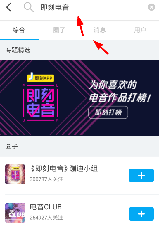 1、现在打开即刻的主页之后,用户们需要从中输入“即刻电音”关键词,通过专题横幅点击进入到活动页面里投票点赞。