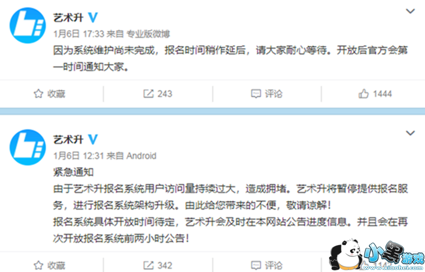 艺术类院校陆续校考报名,但让家长和考生没想到的是,报名网站最开始速度缓慢,后被彻底挤爆。2019年1月6日,不少艺术生反映无法登陆,通过艺考报名App“艺术升”进行报名时遇到了软件卡顿、乱码等问题,导致无法顺利报名。