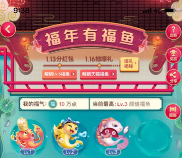 一年一度的电商年货节已于10日在展开。今年淘宝举行的是福年集福鱼换红包的活动。用足够的福气值兑换富鱼最终用富鱼来兑换红包。