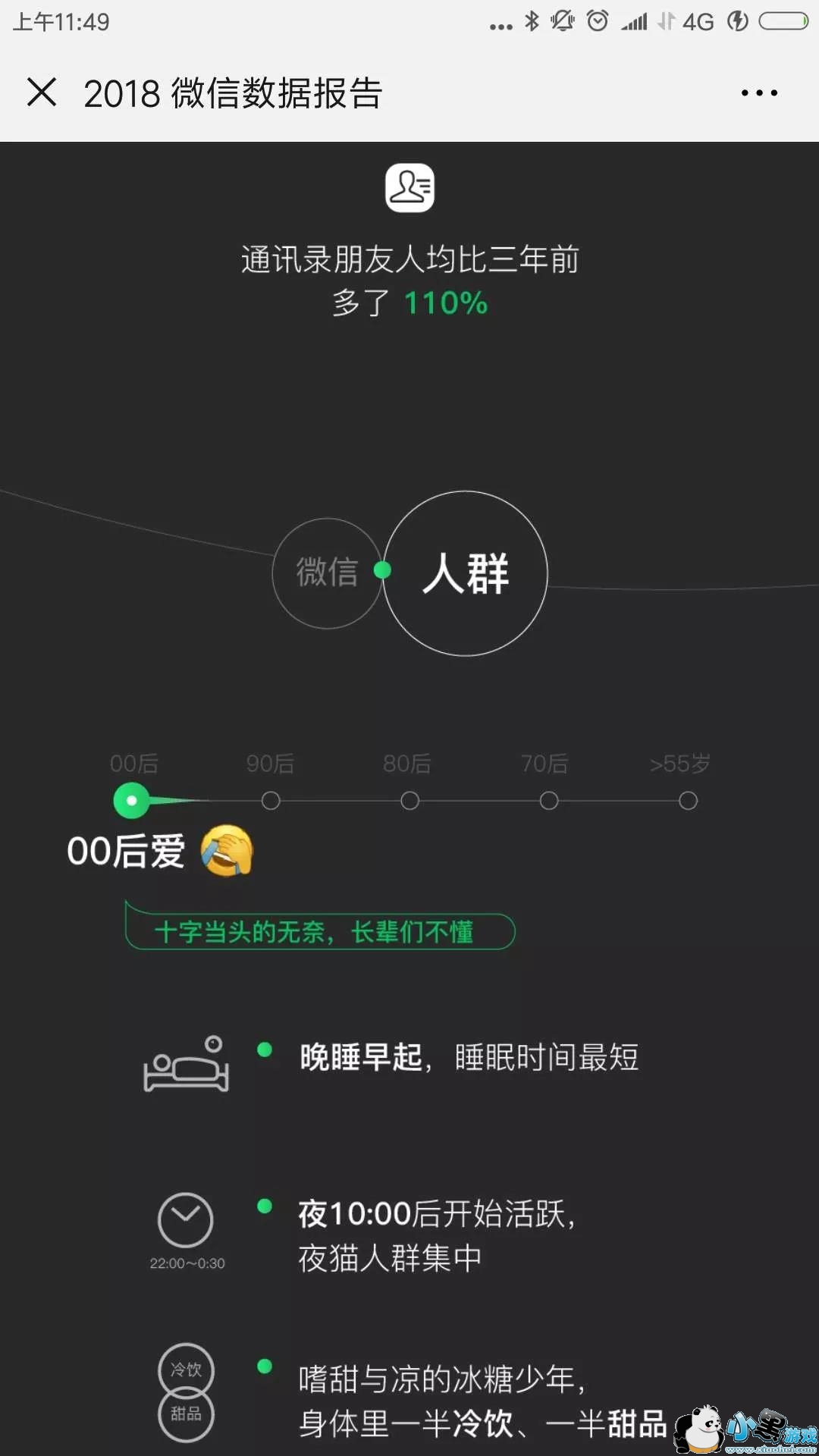 2018年微信数据报告新鲜出炉正热乎。2018在各种软件的年度报告中大张旗鼓的过去了,近日,微信也跟风推出了自己的年度报告,涵盖的东西还是很多的,就连哥哥们年龄段的生活方式也都一一做了比较,可以说是相当用心了。下面就快和小编一起看看2018年微信数据报告新鲜出炉正热乎吧!