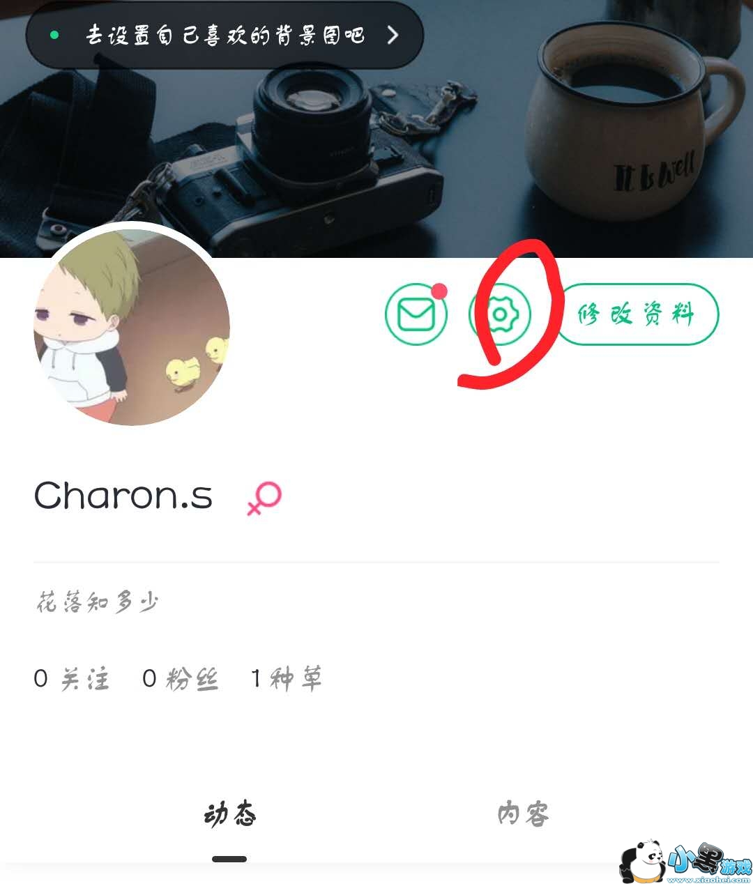 2、进入“我的”页面后,点击“设置”图标,如图。