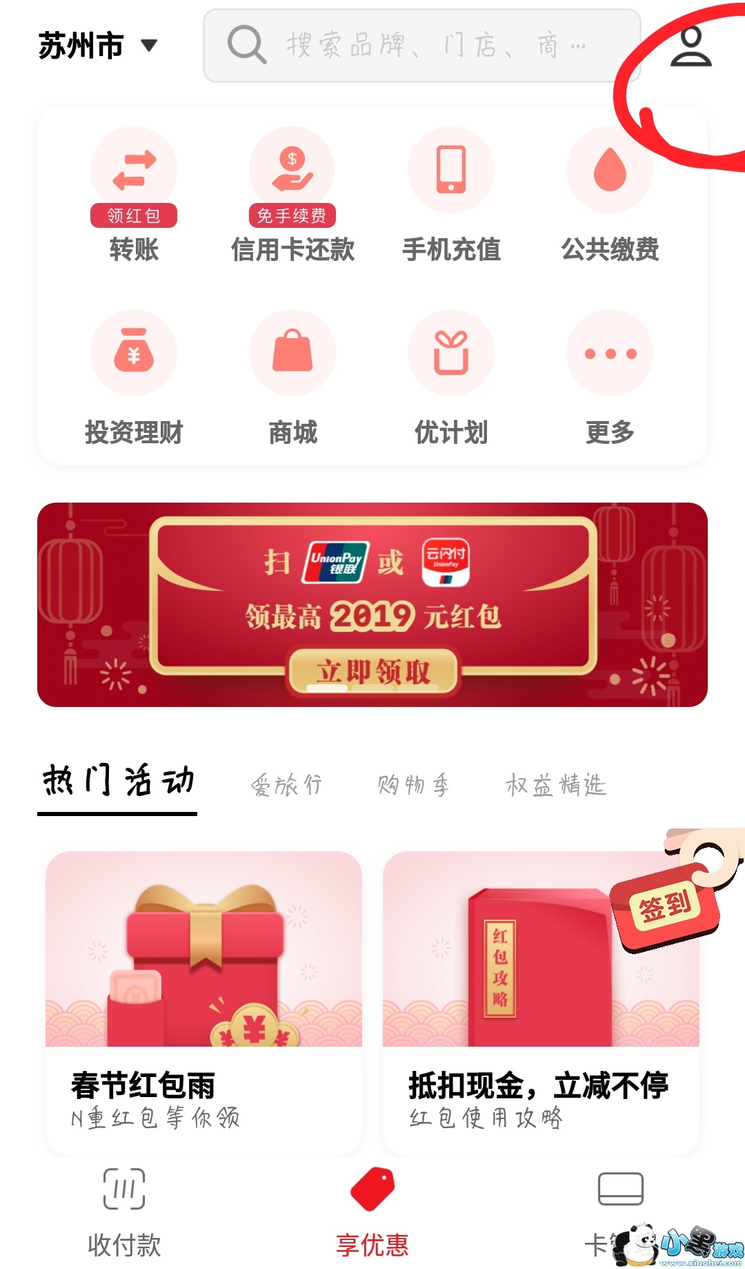 云闪付扫标识领红包在哪里看查看红包。为推广云闪付,银联新年推出了“扫标识领红包”的撒红包活动。只要注册并绑卡,扫描银联标识,可随机领取最高2019元的红包。这次活动只要姿势正确,每个人都能褥到不错的羊毛。下面快和小编一起看看云支付扫标识领红包在哪里看查看红包吧!