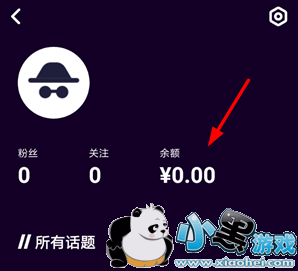 3、点击右上角头像按钮进入个人中心后,大家可以通过“余额”功能打开钱包充值,也可以随时删除自己发布的话题。