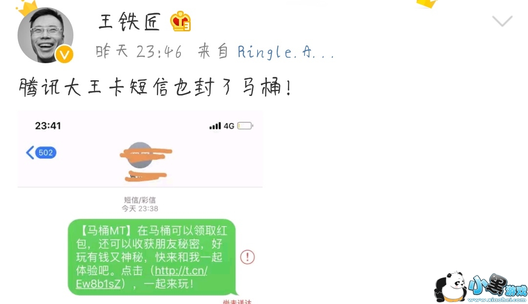 尽管影响力不大,但神奇的是,这款软件没隔多久就被社交老大哥腾讯给封杀了。王欣的微博随后发了一条微博,图片显示微信已经禁止了马桶MT的分享链接,王欣戏谑中带着无奈调侃道:“不知道你怕什么?”很多朋友感觉这是马桶感mt无法正常使用的原因。但是王欣的后续微博却是越来越心塞。