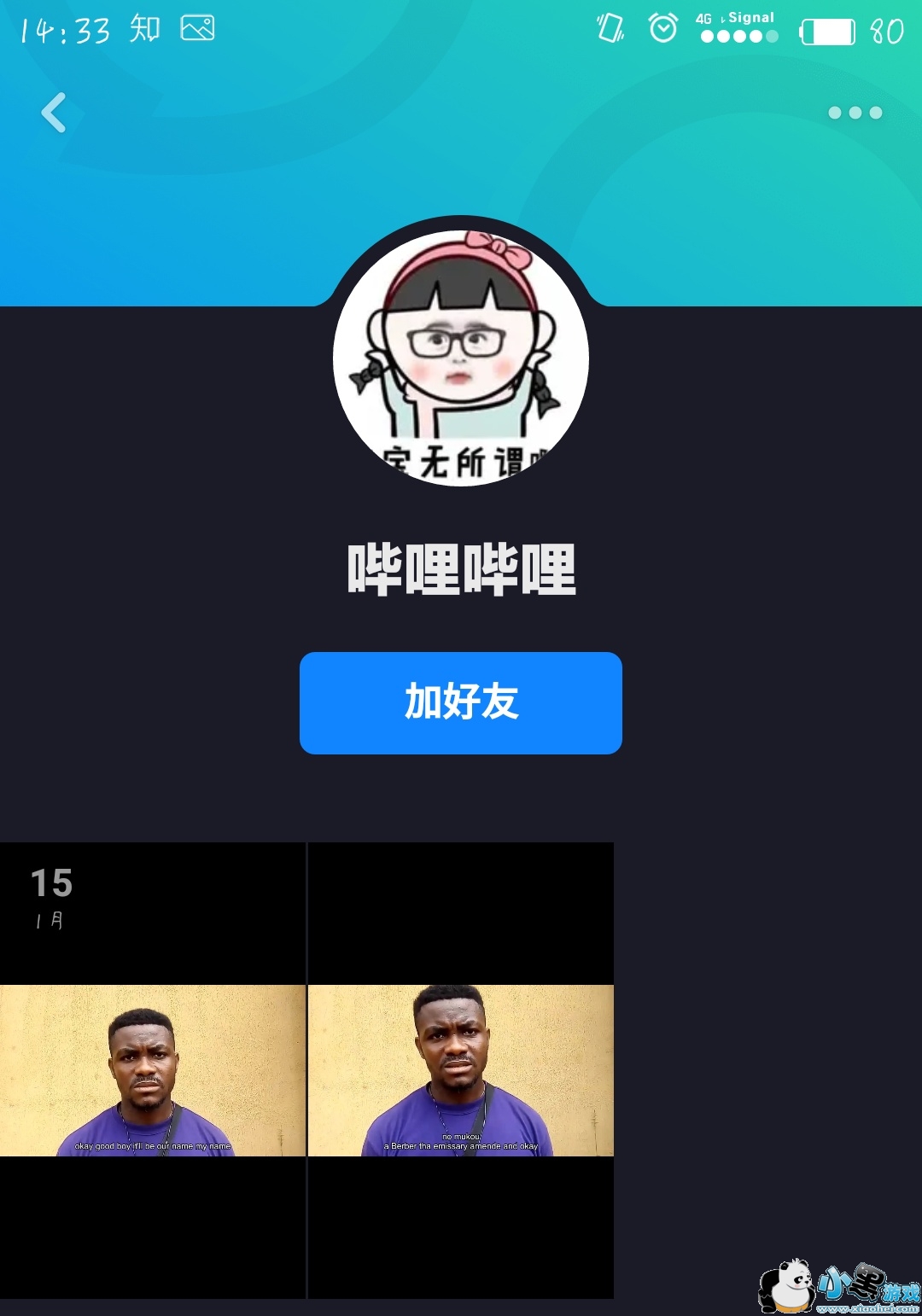 3、点击进入需要添加好友的人的页面,点击:加好友,即可添加成功。