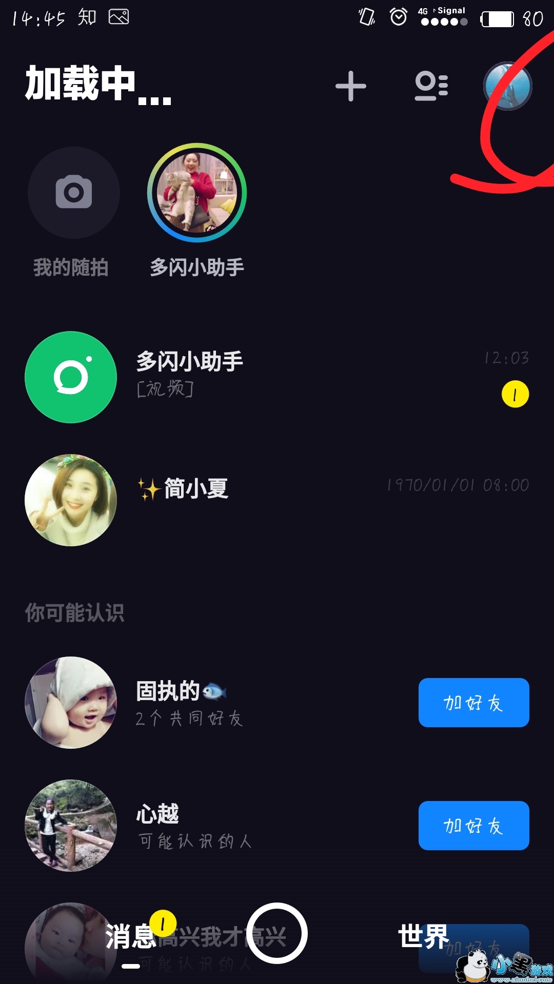1、打开多闪APP,点击右上角的小人标志,进入个人页面。