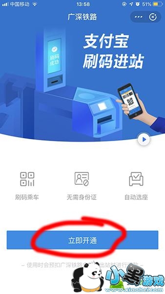 1、打开支付宝搜索“广深国际扫码通”小程序,进入之后点击【立即开通】;