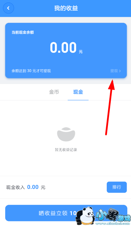 3、如此一来,从人民币的页面里点击右下角“提现”按钮,只要满足余额大于30元的条件,我们就可以成功提现收益了。