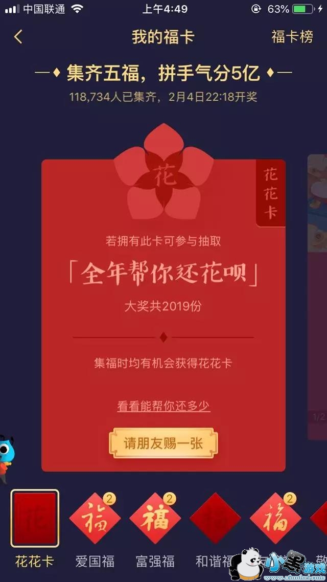 今年非常有意思的是,我们会在今年看到去年的万福卡,还新增了花花卡,这个卡可谓非常厉害了,获得这个福卡可以有机会获得“全年帮你还花呗”大奖,最高48888元,共有2019份,将在2月4日21:20开奖。