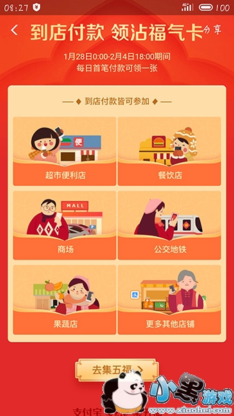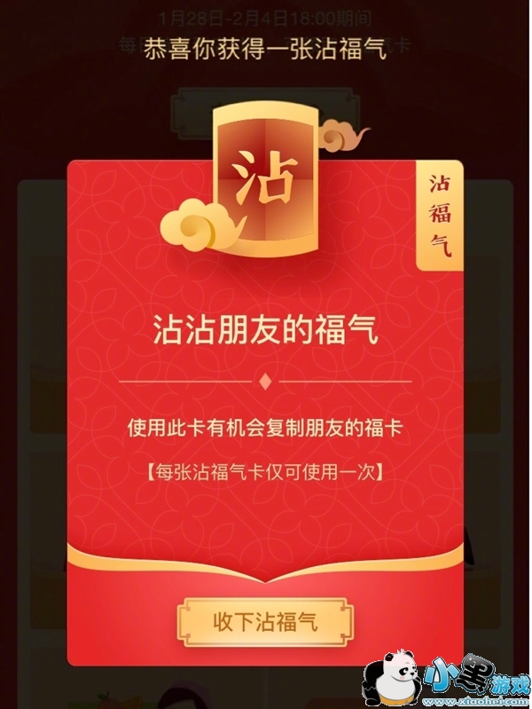 沾福气卡的获取方式说来也简单,就是扫福,或者到店支付宝消费,都有机会获取,但是这个几率嘛……就看你有没有锦鲤的体质喽。
