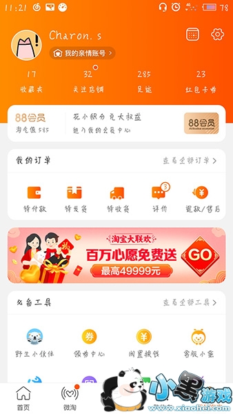 我们只需要打开淘宝的我的页面就可以看到淘宝大联欢的入口了哦!