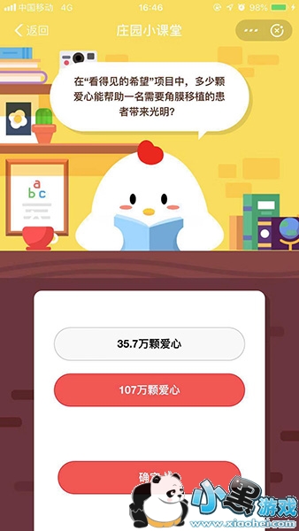 选项是【35.7万颗爱心】、【107万颗爱心】